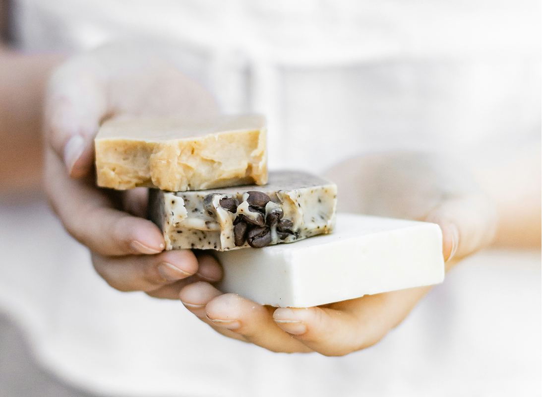 Inside, you'll find vessels chosen with care: aluminum tins, glass bottles, and soaps wrapped in paper . Materials that protect your product and return gracefully to the cycle.